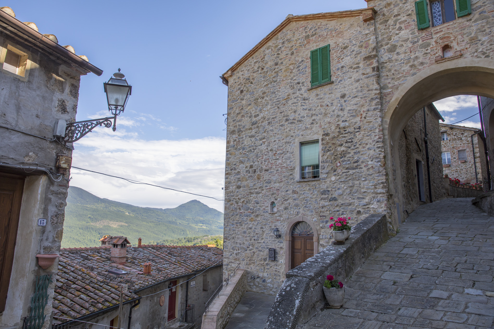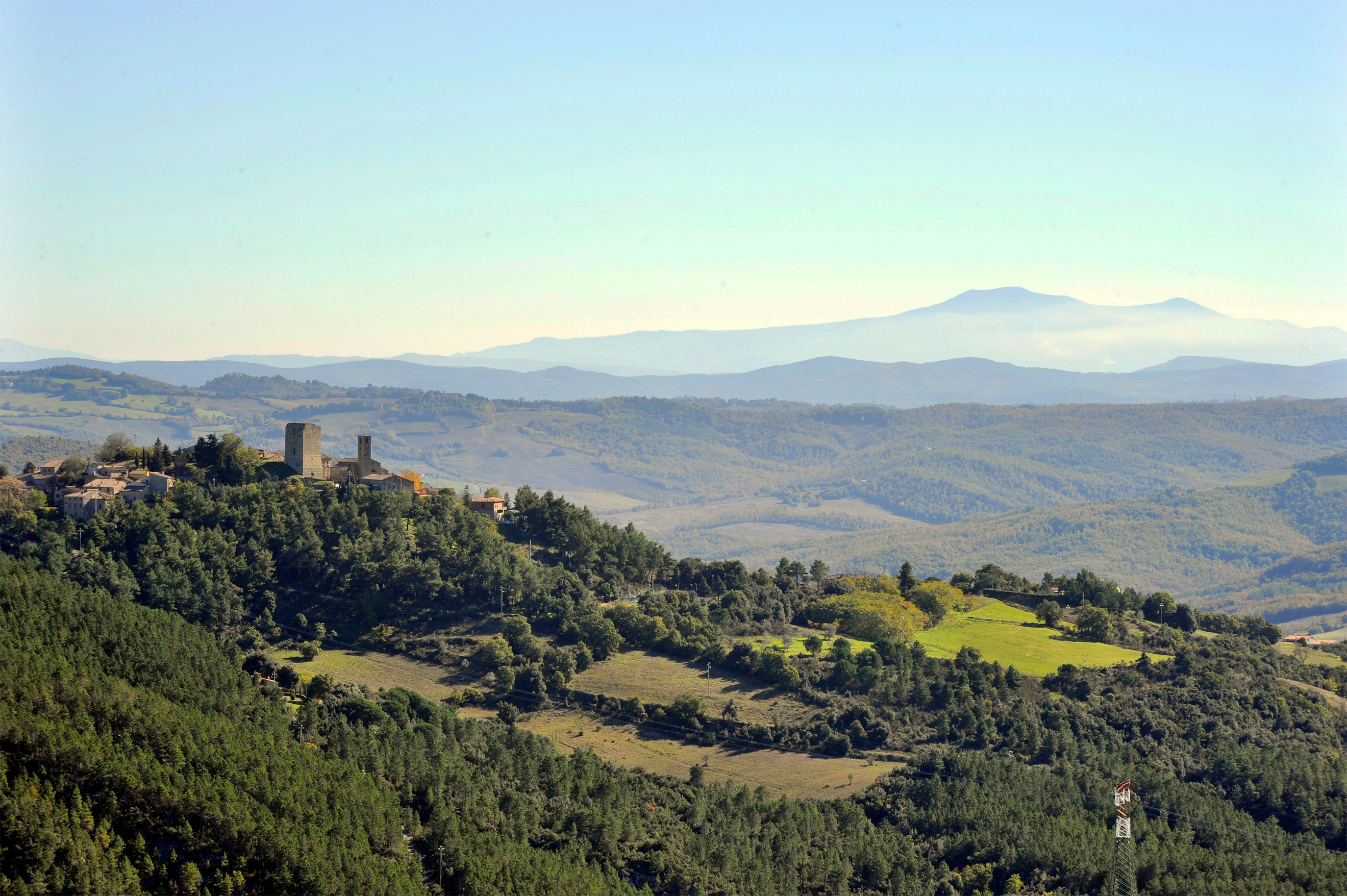 Montecastelli Pisano Dalla sommità del paese lo sguardo spazia sulle valli del Pavone e del Cecina offrendo un panorama di suggestiva bellezza che spazia dall’Appennino fino al Monte Amiata.