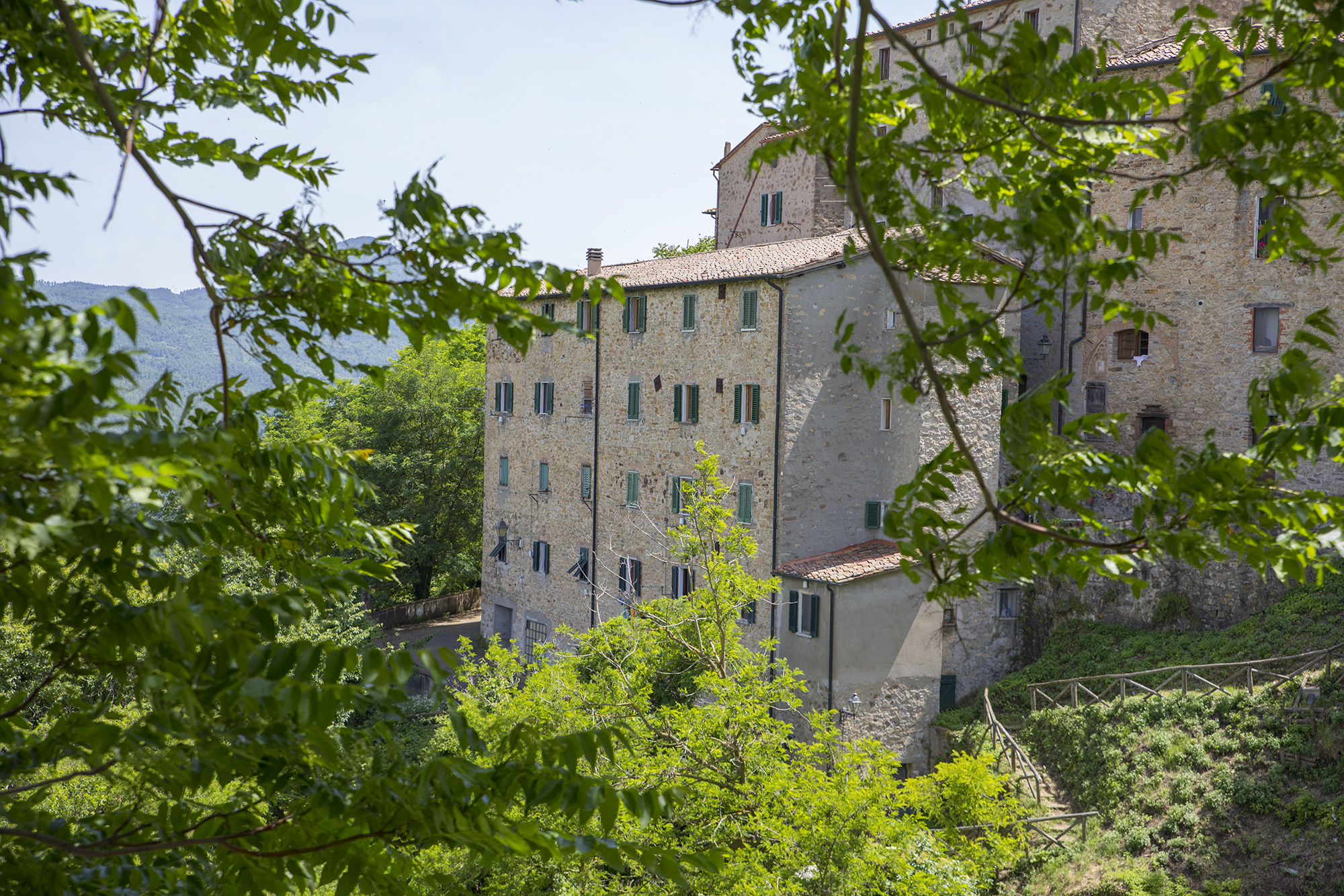Il borgo medievale ancora intatto vanta di una particolare omogeneità architettonica tipicamente medievale: con le sue viuzze strette e tortuose lastricate di pietra, le antiche porte e gli sorci sulla vallata, si presenta caratteristico e accogliente, integrato con i boschi circostanti e non essendo percorribile con le auto offre tranquillità e quiete. Grazie a uno dei 12 percorsi naturalistici segnalati a cura del Comune e del “CAI di Pisa” è possibile visitare il borgo (percorso C11) cercando ad esempio il piccolo vicolo del Chiassino (largo solo 45 cm) o accedere direttamente ai circostanti boschi di castagne e scendere fino alla Val di Pavone dove è possibile ammirare i resti di due ponti rinascimentali (Percorso C9).
