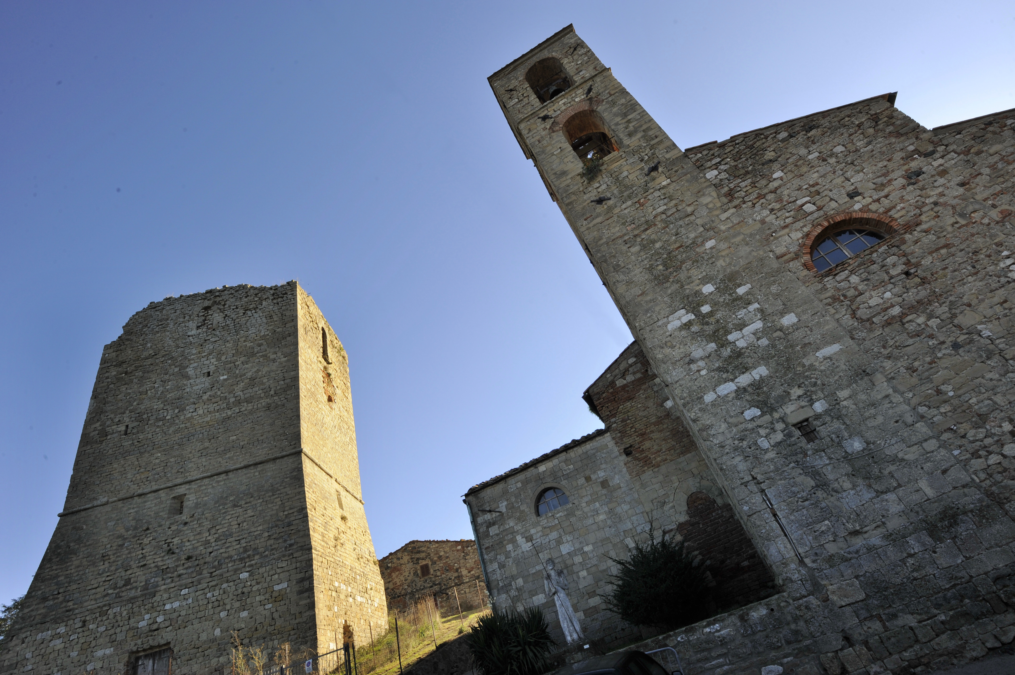 Gli edifici più importanti sono la Torre dei Vescovi e la chiesa romanica dei Santi Filippo e Giacomo. La struttura urbana è tipica dei villaggi medievali: a pianta circolare con strade parallele tra loro e passaggi coperti o scoperti tra casa e casa per collegare una strada all’altra. Allo scopo di raccogliere e conservare attrezzi da lavoro agricolo e domestico utilizzati tra la fine dell’800 e l’inizio del ‘900, è stato allestito il museo della Civiltà Contadina. A pochi metri dalla strada provinciale, merita attenzione la tomba etrusca della “Buca delle Fate” risalente all’VIII sec. a.C..